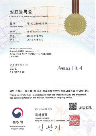 Aquafit4 상표등록증