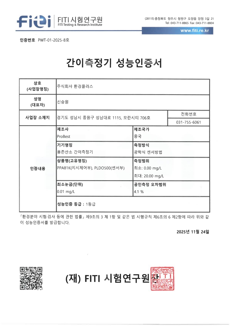 DO 미터 성능인증서