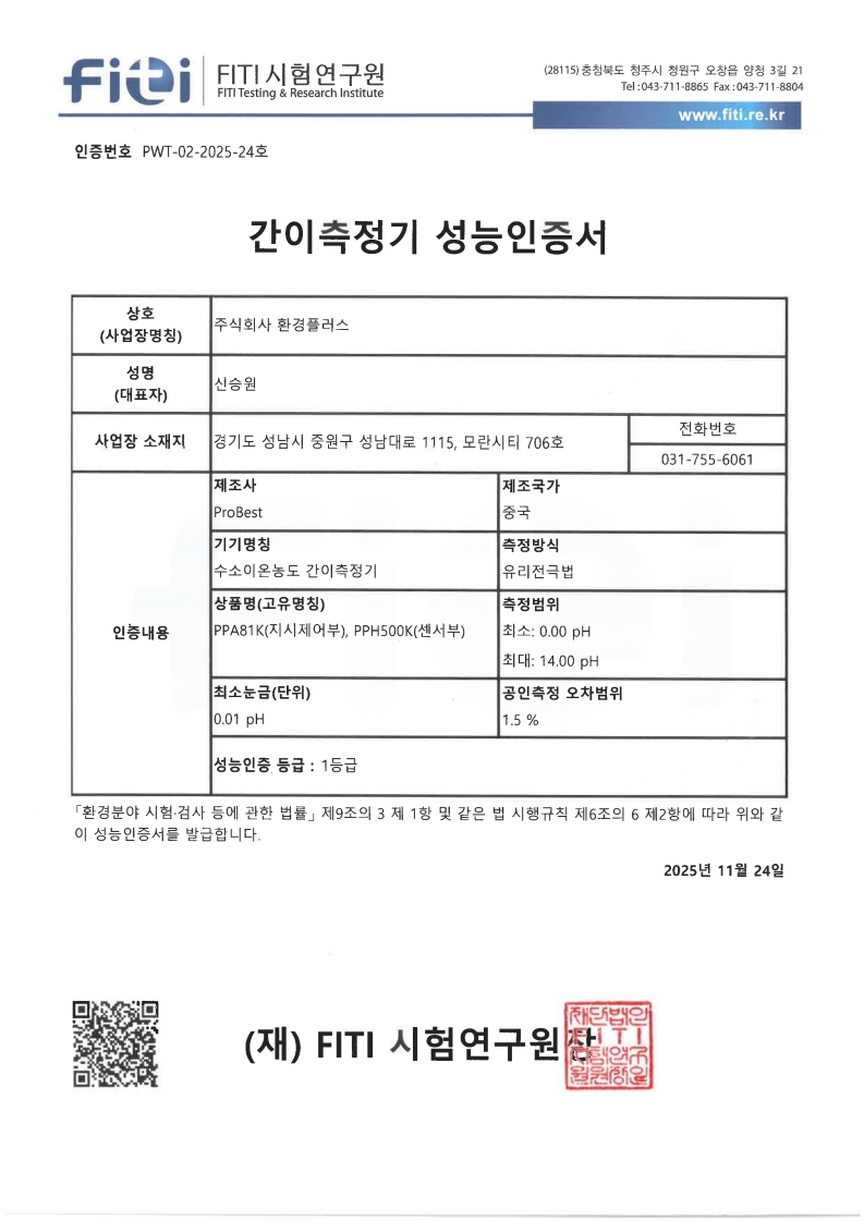 pH 미터 성능인증서